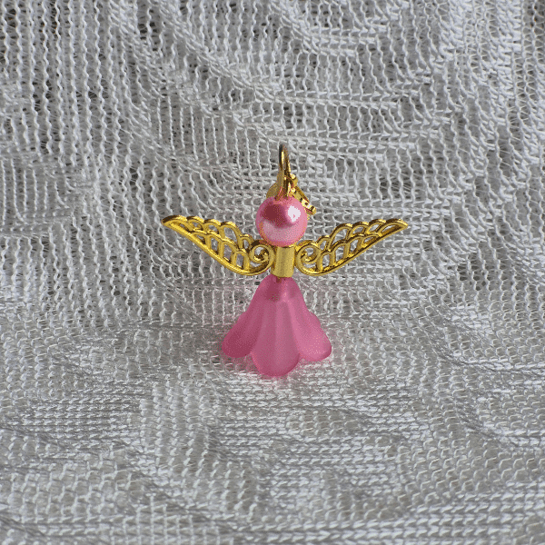 Geef ons geluksengeltje roze filigraan cadeau en gun een vriendin, familielid of andere dierbare een klein geluksmomentje. Dit geluksengeltje met roze en goudkleurige filigraan vleugels is een klein, handgemaakt symboolsymbool van liefde, bescherming en troost. Een mooi cadeautje voor iemand die wel wat extra geluk kan gebruiken. of gewoon voor jezelf als klein geluksmomentje. Het engeltje is gemaakt met een zachte roze kraal, sierlijke filigraan vleugeltjes, wat het een lieve en verfijnde uitstraling geeft. Door het compacte formaat is het perfect om bij je te dragen: aan je sleutelbos, tas of klein gelukshangertje.