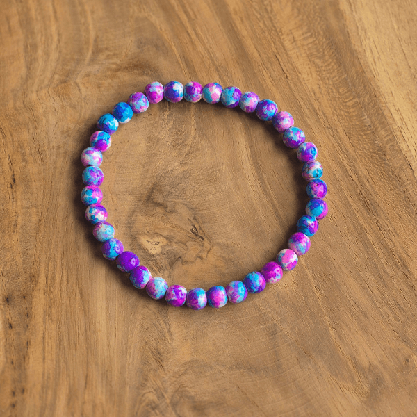 Deze kleurrijke kralenarmband van Handmade by Dena is een vrolijk en handgemaakt sieraad voor iedere dag. De armband is geregen met 6 mm keramiek kralen in een speelse combinatie van roze, paars en blauw. De bijzondere kleurmix geeft de armband een levendige uitstraling en maakt hem een echte blikvanger om je pols. Elke armband wordt met zorg en aandacht met de hand gemaakt. De kralen worden één voor één geregen op stevig elastiek, zodat de armband comfortabel om de pols zit en eenvoudig aan en uit te doen is. Dankzij het elastiek sluit de armband mooi aan en is hij prettig om de hele dag te dragen. Keramiek kralen staan bekend om hun gladde afwerking en lichte gewicht. Daardoor voelt de armband prettig aan en blijft hij ook bij dagelijks dragen mooi. De kleurrijke tinten roze, paars en blauw zorgen voor een speels en vrolijk effect dat bij veel verschillende outfits past. Of je nu kiest voor een casual look of juist een subtiele kleuraccent wilt toevoegen aan je outfit, deze armband is een mooie aanvulling op je sieradencollectie.
