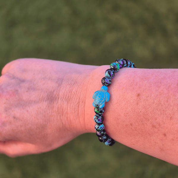 Een armband cadeau geven wordt wereldwijd gedaan, ze staan symbool voor vriendschap, liefde en verbondenheid. We zijn het misschien niet zo gewend, de kralenarmband schildpad is ook een prachtig cadeau om jezelf te geven, De schildpad staat in veel culturen symbool voor een lang leven, wijsheid, geduld en bescherming. Howliet is een natuursteen die symbool staat voor geduld en innerlijke rust, samengebracht in één armband.